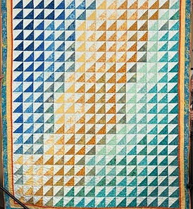 The second Opportunity Quilt is "Triangle Treasures." This top was also donated and the gorgeous quilting was completed by Debbie Audenreid. Local resident and veteran Jim Cross is the lucky recipient of this quilt.